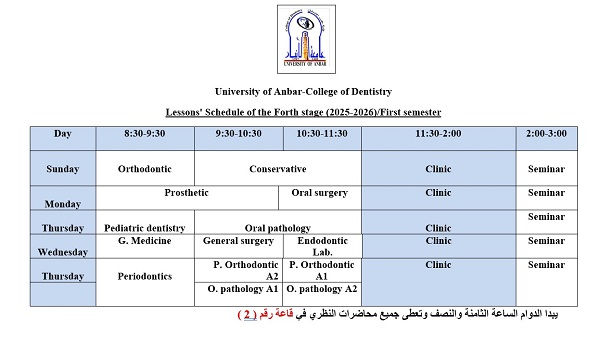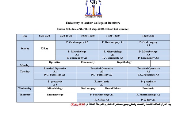 توقيتات المحاضرات الدراسية للدراسات الاولية للعام الدراسي 2025-2026